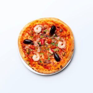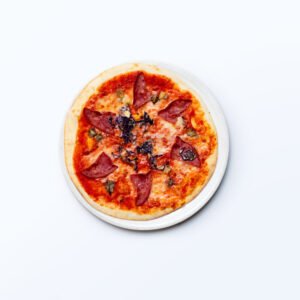 Tomato sauce with mozzarella cheese topped with fresh cherry