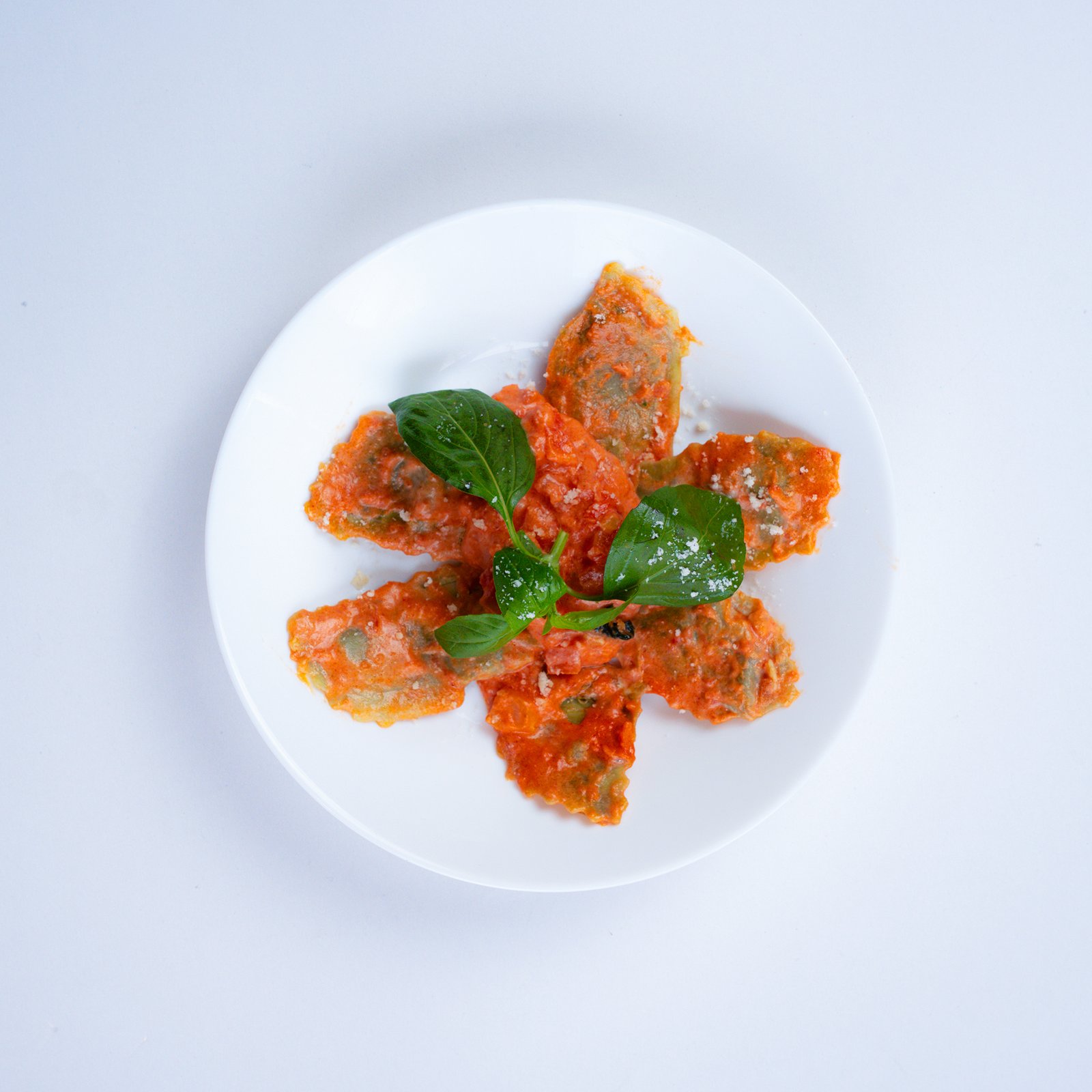 Half-moon hand-made pasta stuffed with ricotta cheese and spinach served in a creamy rosè sauce.