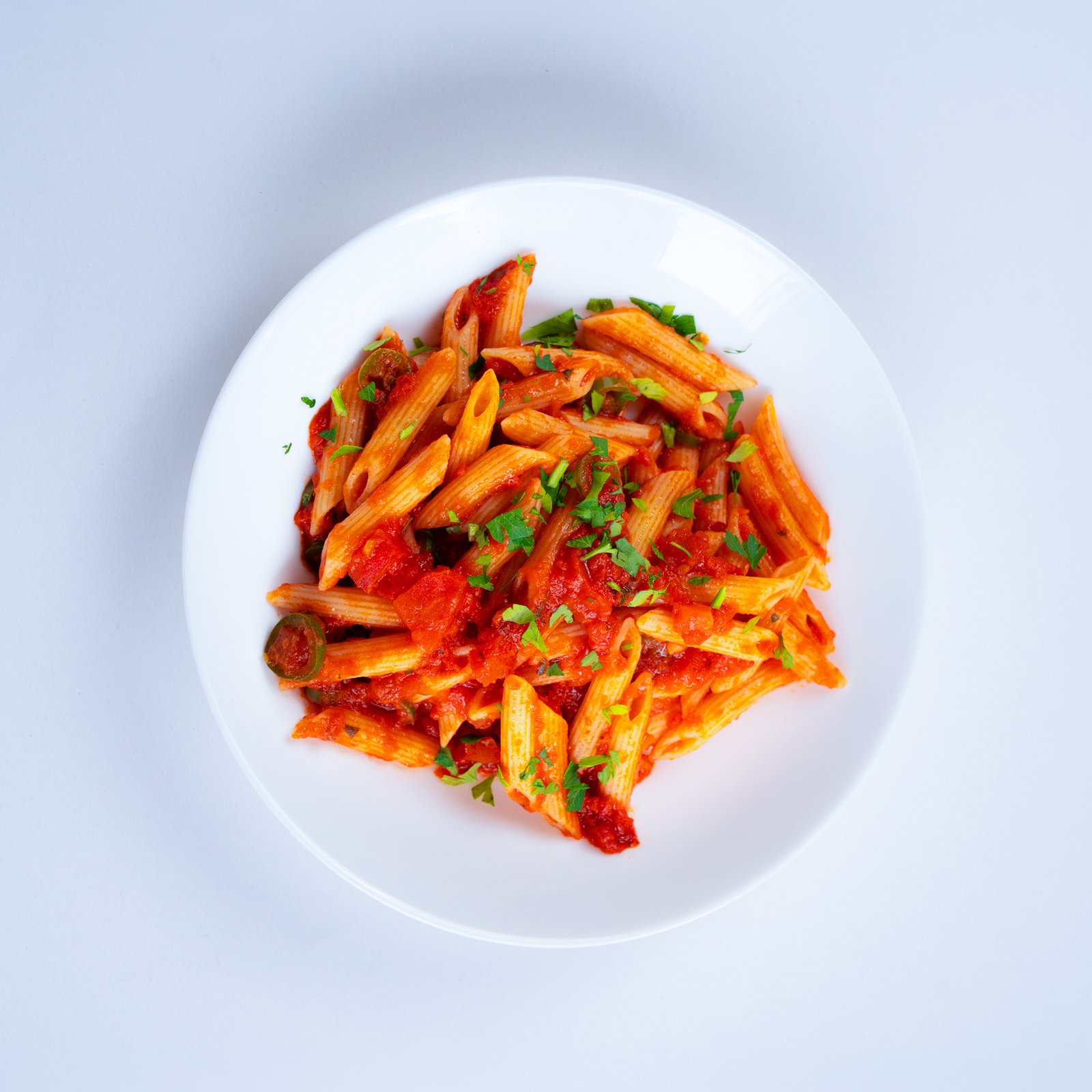 Penne tossed in a rich spicy tomato sauce with fresh’cut parsley and green chili peppers.