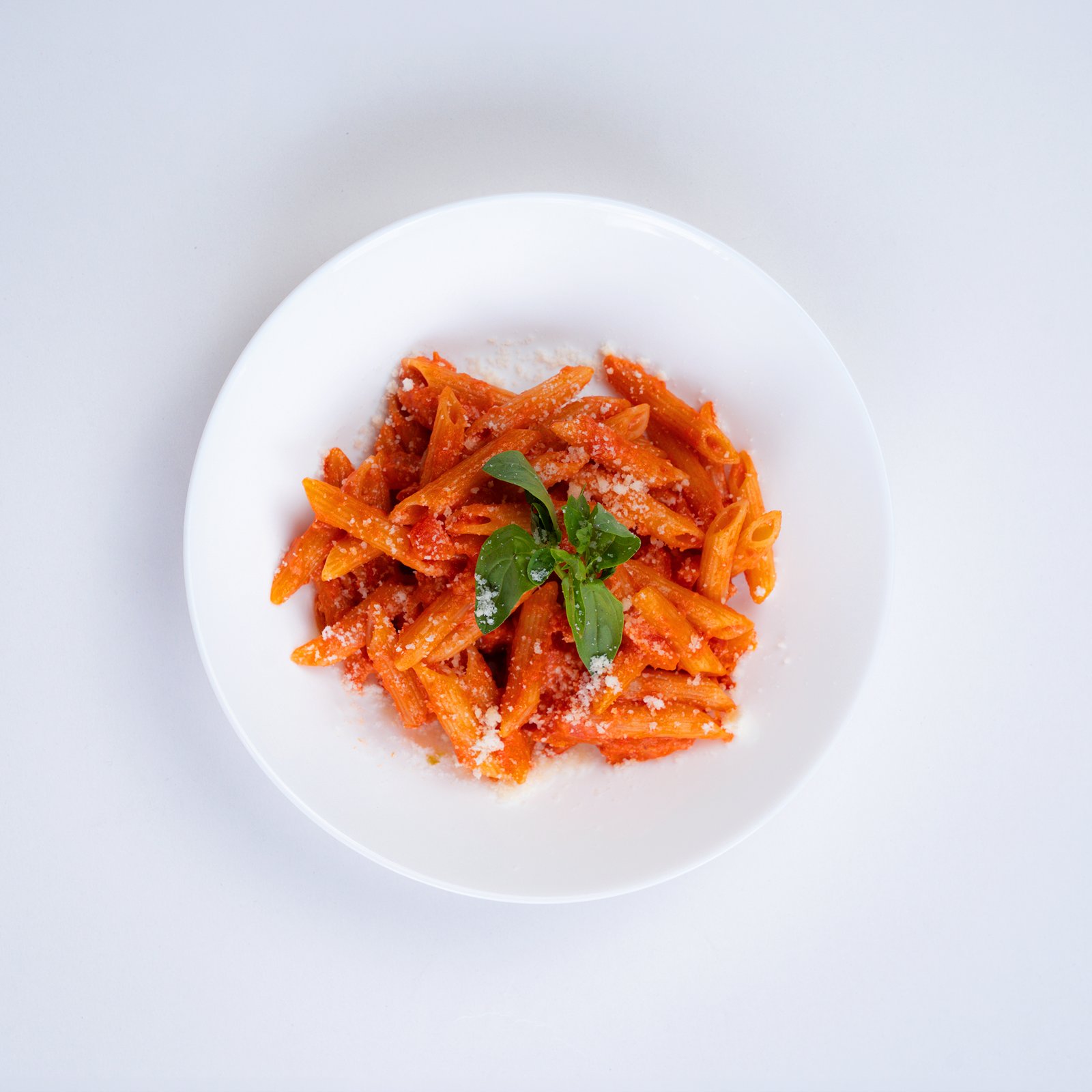 Penne in a creamy yet rich rosé sauce with basil and parmesan chesse.