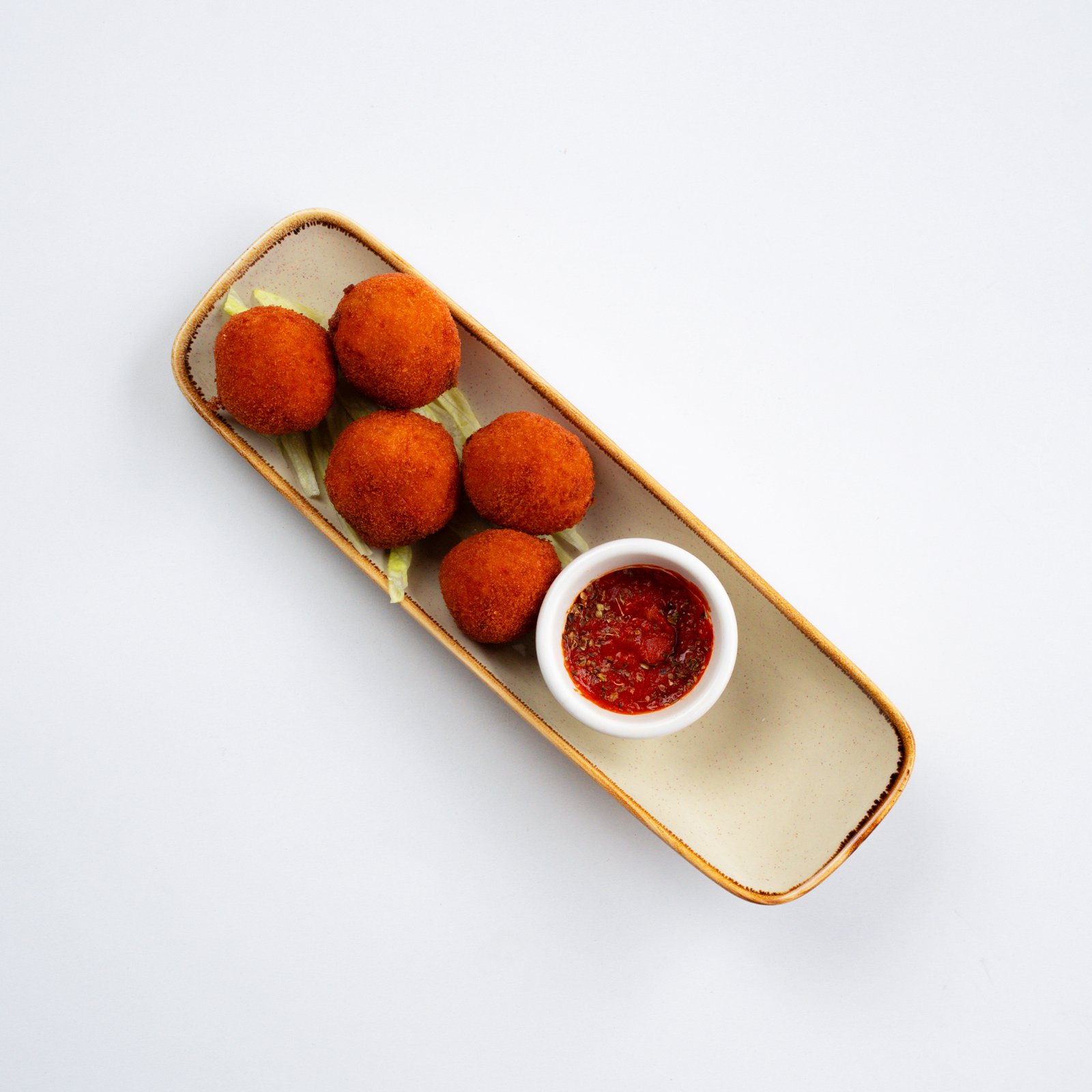 Crispy fried risotto balls stuffed with tomato sauce and mozzarella cheese. Served with marinara sauce.