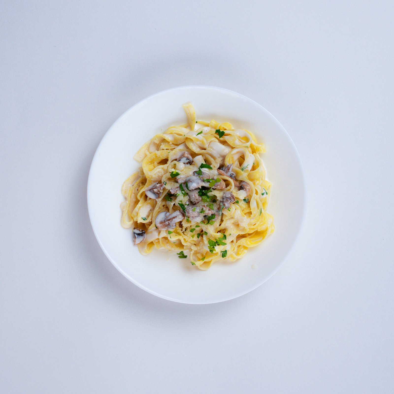 Handmade fettuccine with sautèed fresh mushrooms, fresh cream, fresh-cut parsley and parmesan.